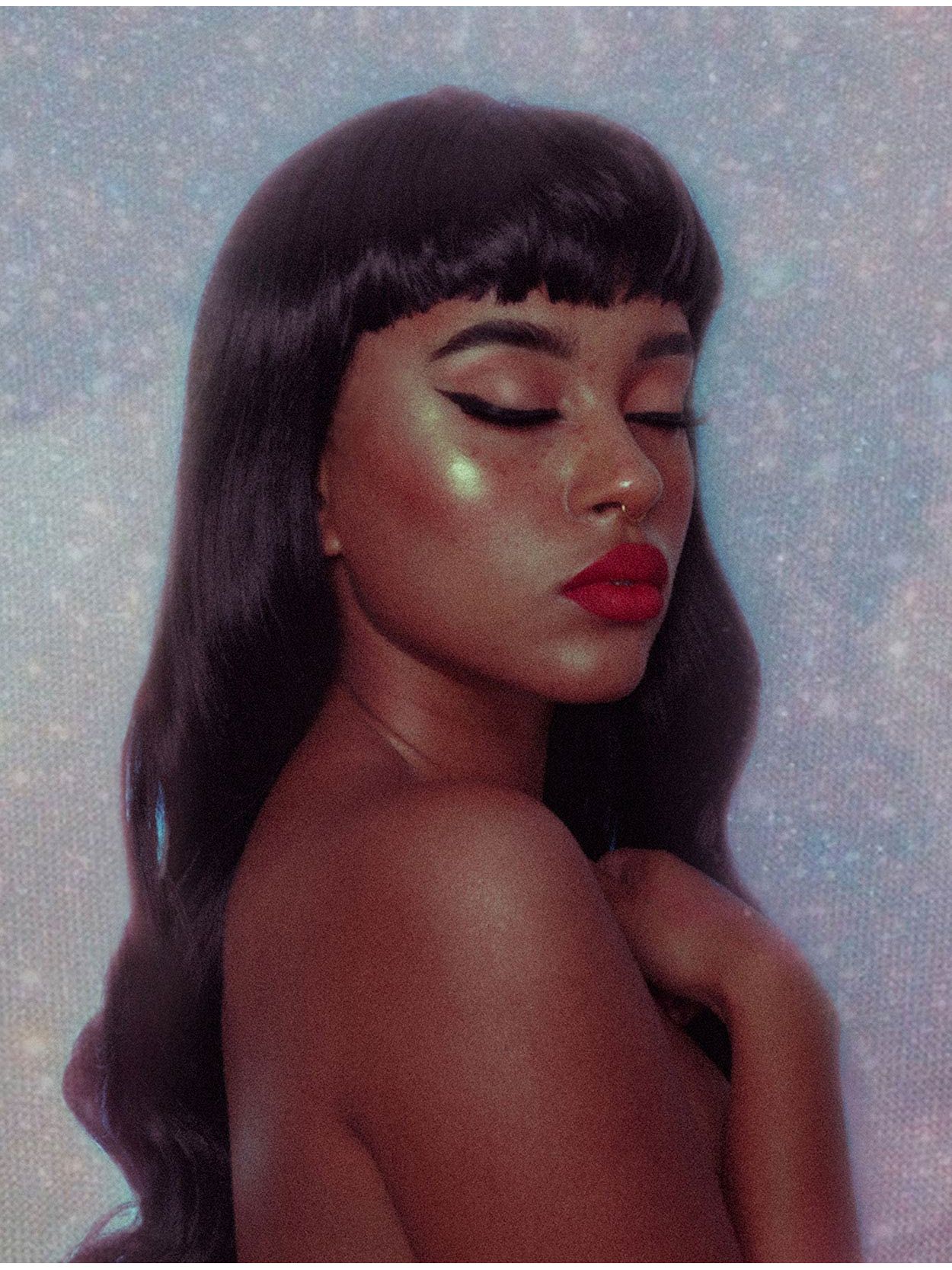 The perfect, short and blunt Bettie Page bangs complete the show-stopping pin up girl look.
