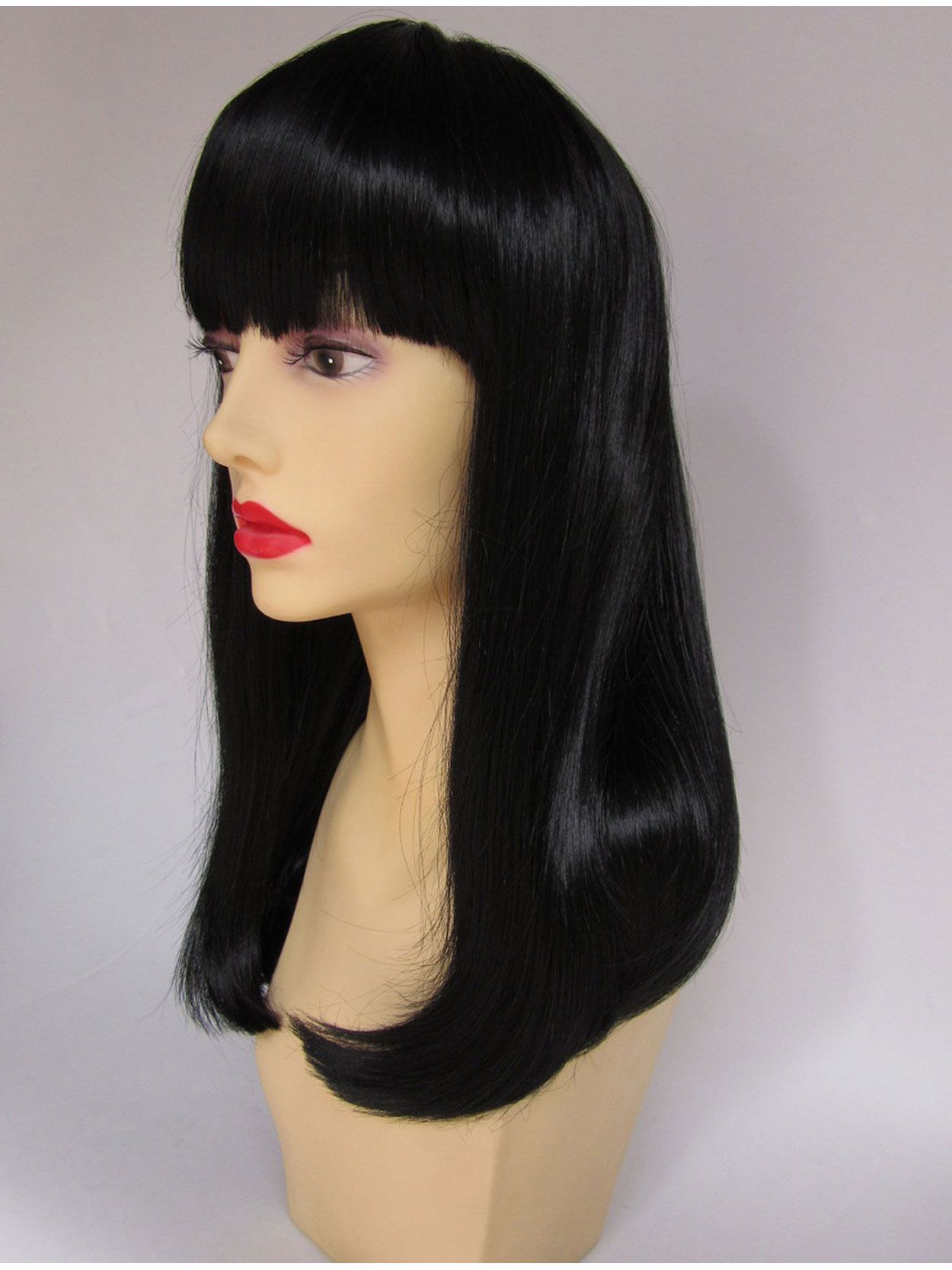 Our deluxe jet black wig is poker straight, with lots of body and healthy bobbed ends.