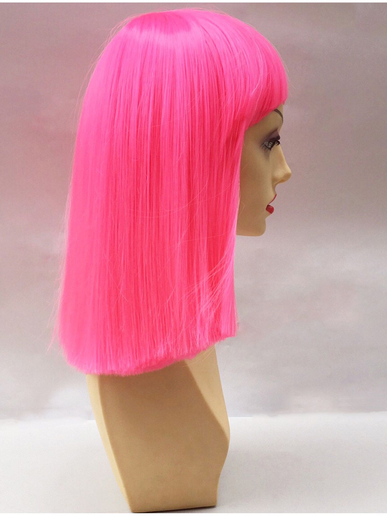 Neon Pink Bob Wig With Bangs