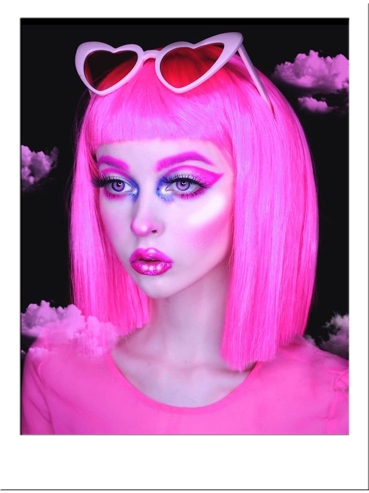 Taking inspiration from the brilliant Crazy Horse Cabaret performers and their famous square cut bob wigs, our neon pink wig sits short and symmetrical with matching wide set, blunt fringe.