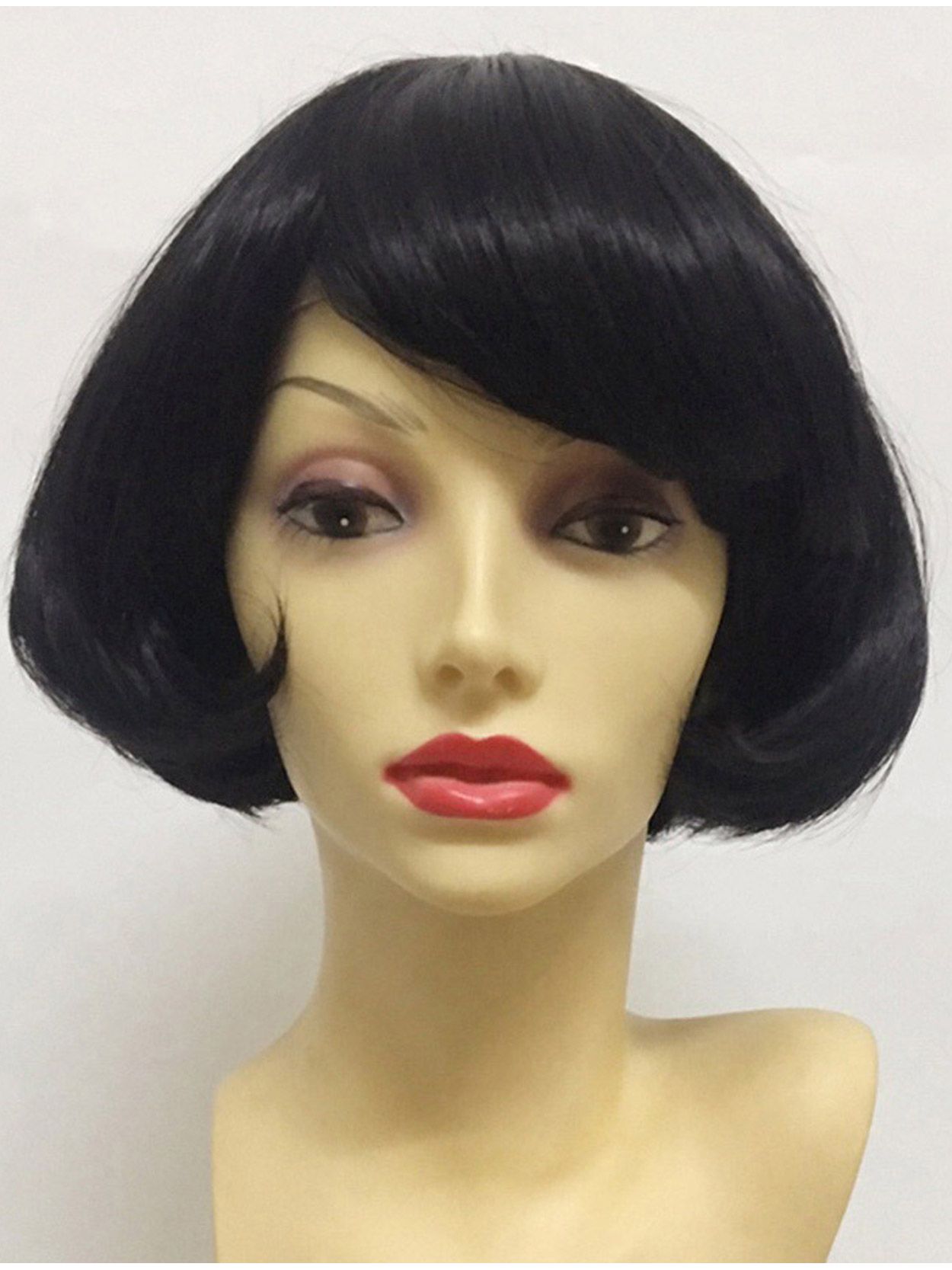 The silky hair length ends are noticeably inverted, designed to be tucked under the ear for a retro look.