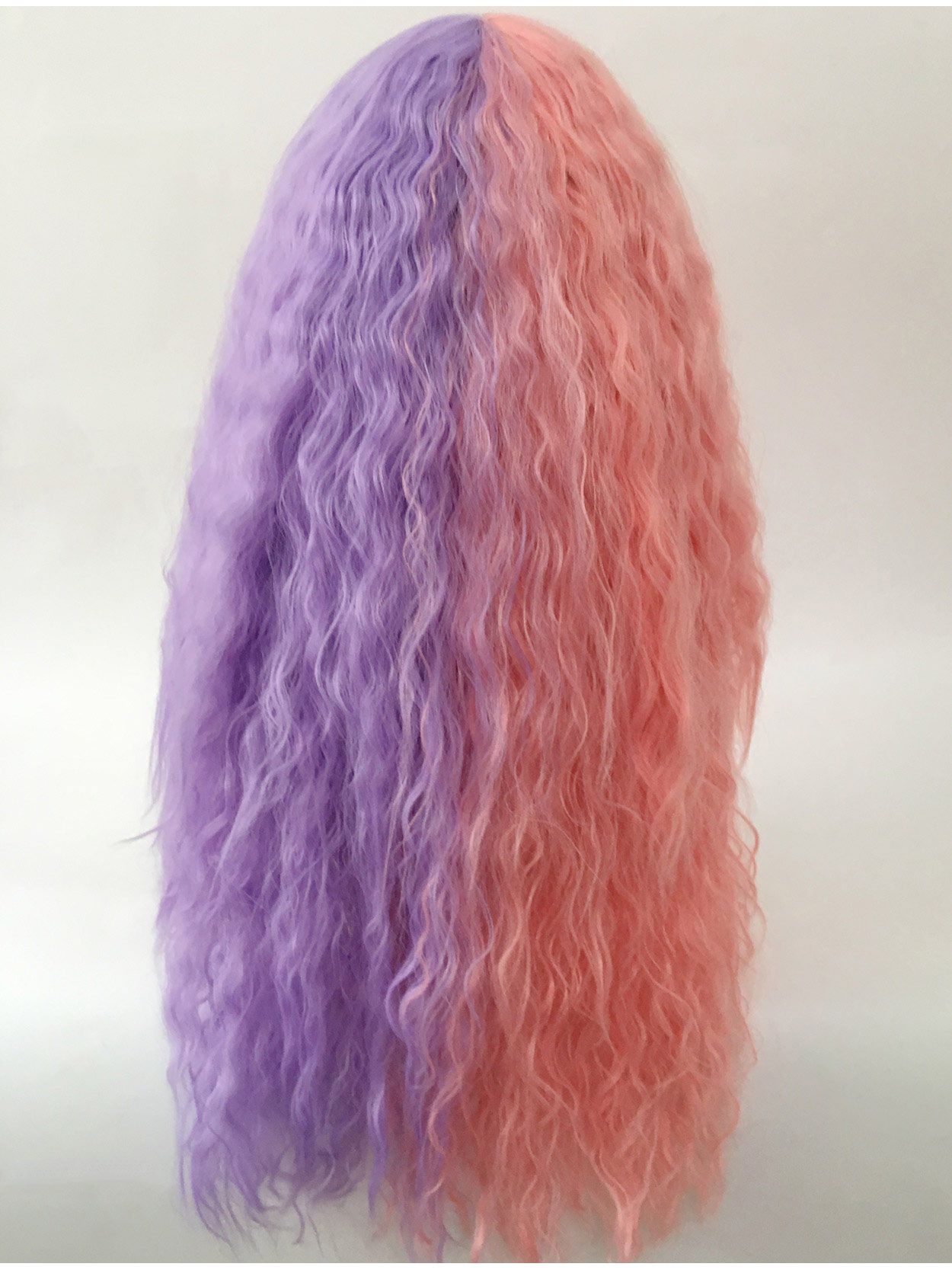 Selected from the sweetest of pastel palettes, a delectable combination of pastel pink and purple unite in this dramatic split colour wig.