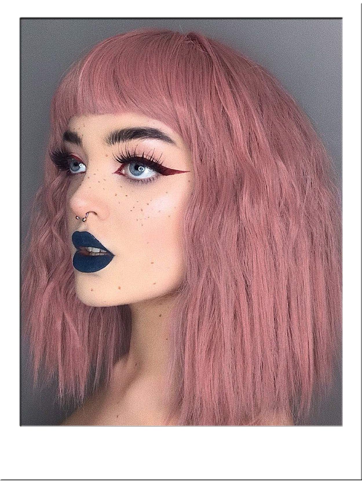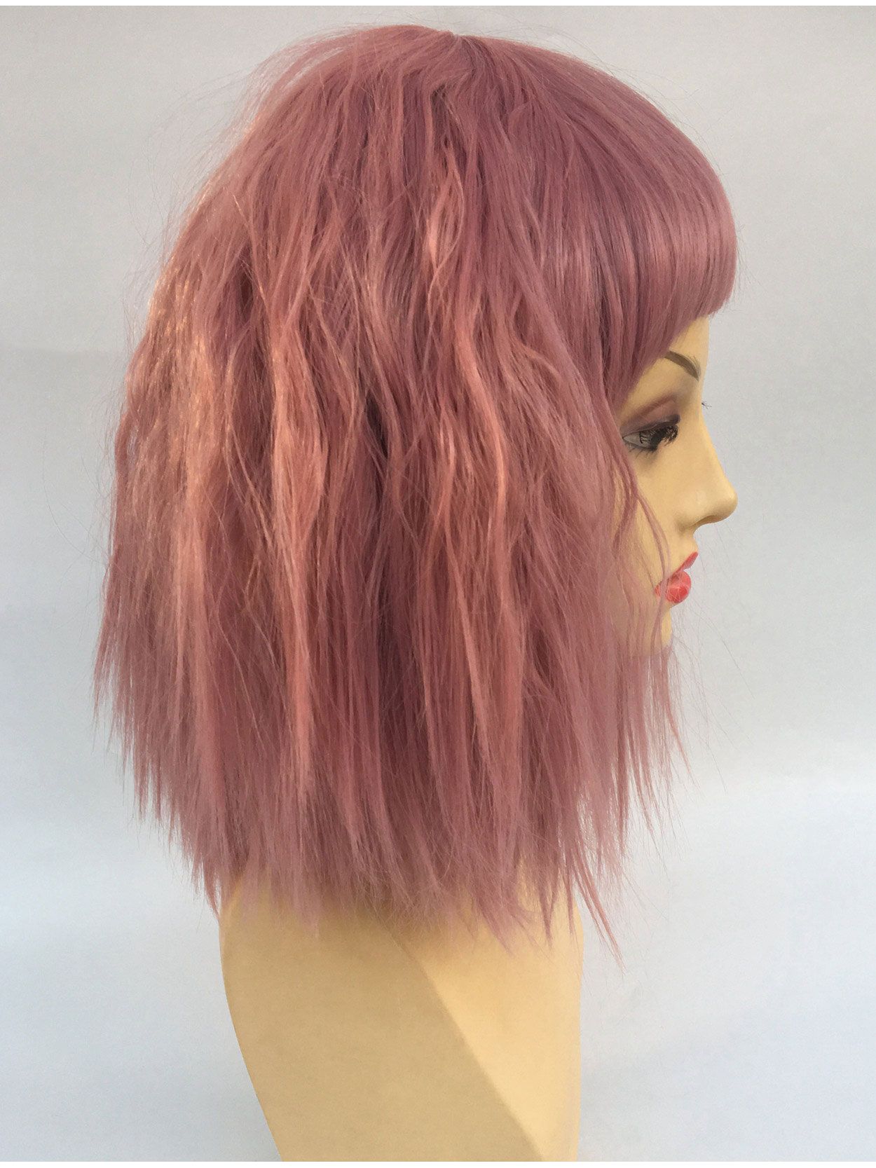 Adorable midi bob wig in a delightful shade of dusty pink.