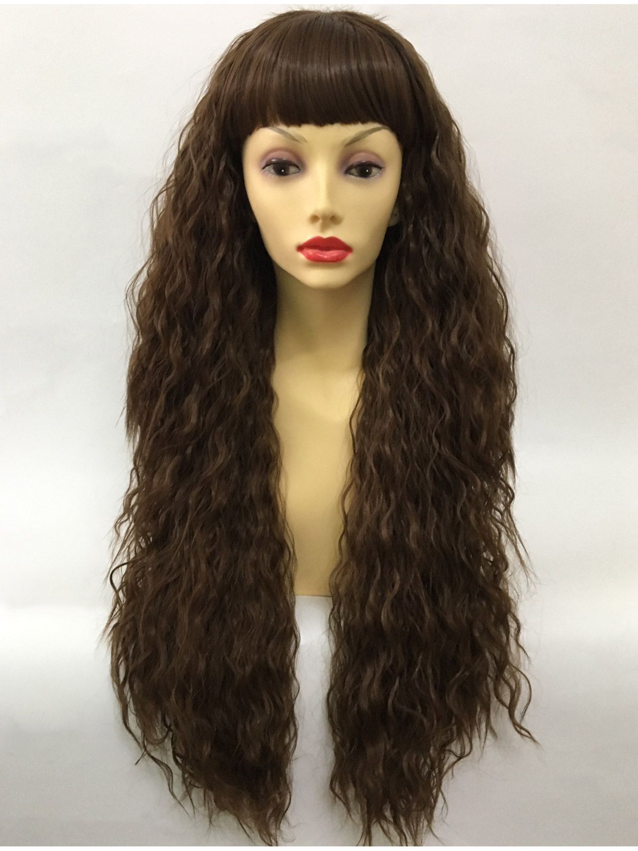 Long Brown Crimped Wig