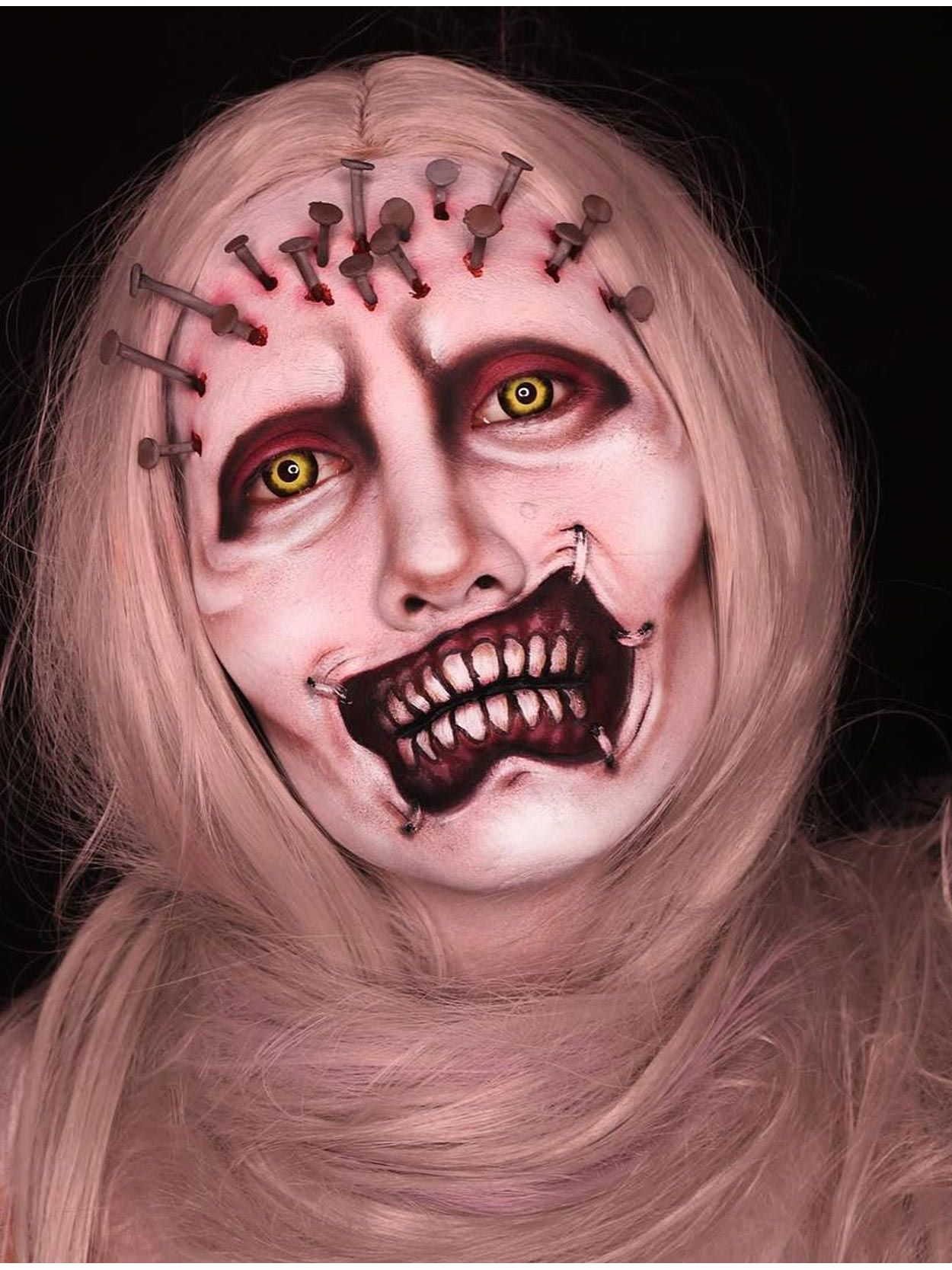 Exquisite extra long Halloween themed ghost wig features deathly grey straight hair lengths and centre part with authentic part line.