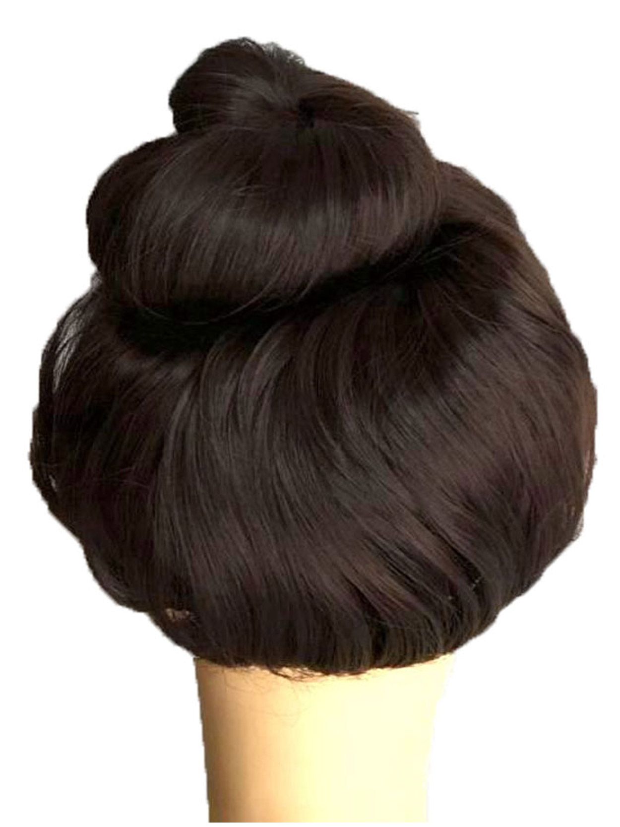 Our beautifully authentic Mary Poppins costume wig features a swept up style with symmetrical top knot.