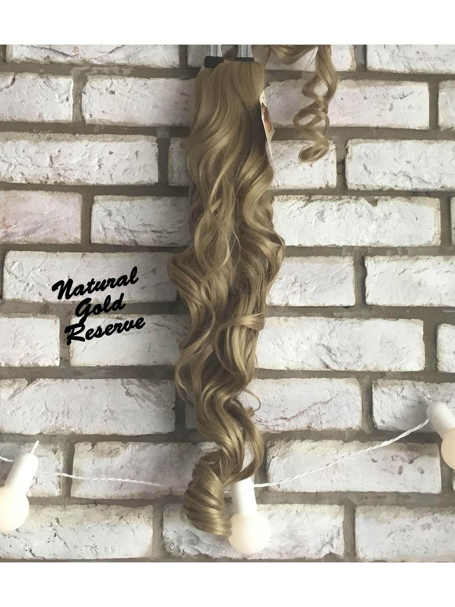 A gloriously long, voluminous clip in ponytail with full, bouncy curls that can be styled into an array of designs.
