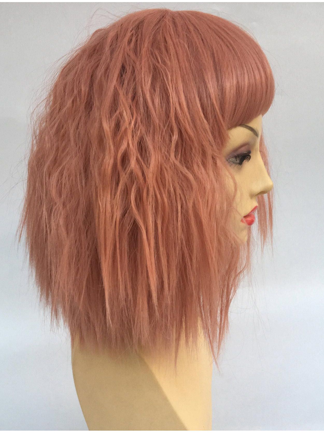 Peach Wig Wavy With Short Fringe