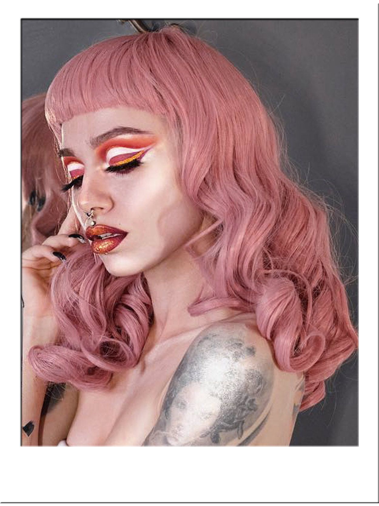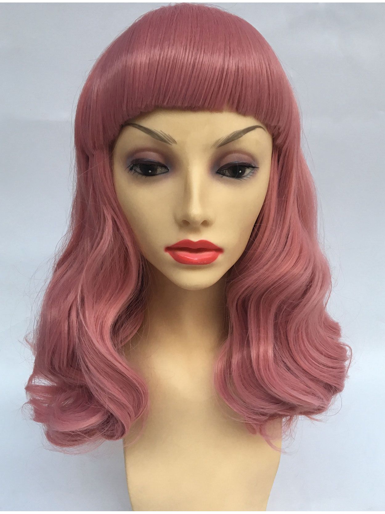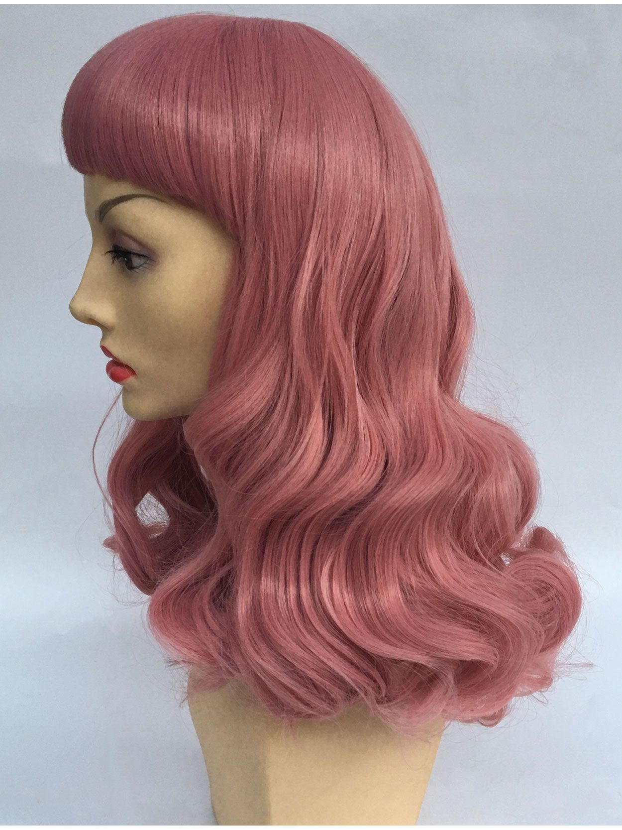 Pink Curly Pin Up Wig With Short Bangs