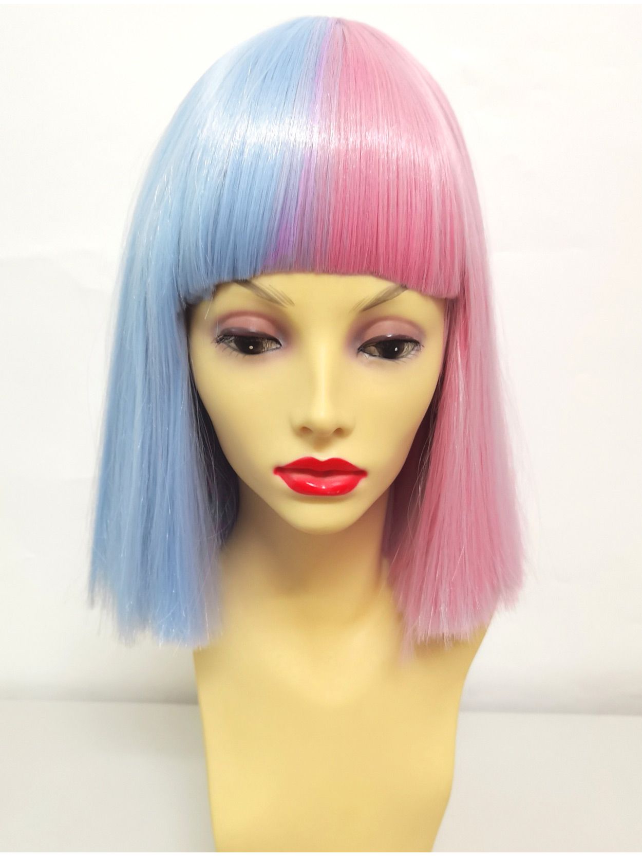 Half Pink Half Blue Split Colour Bob Wig