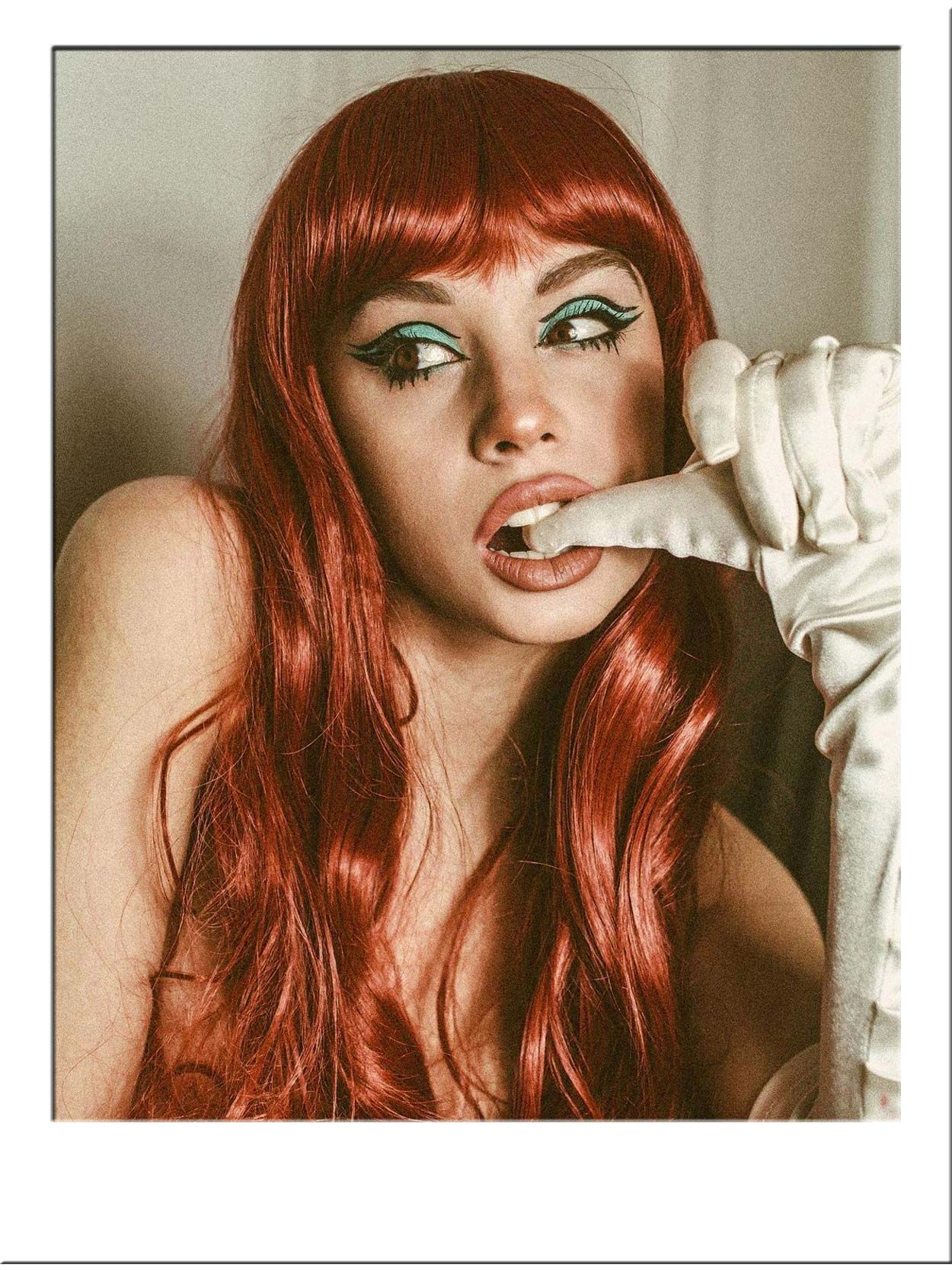 A spicy redhead retro dream with short, blunt cut Bettie Page bangs for the ultimate pin up girl look.