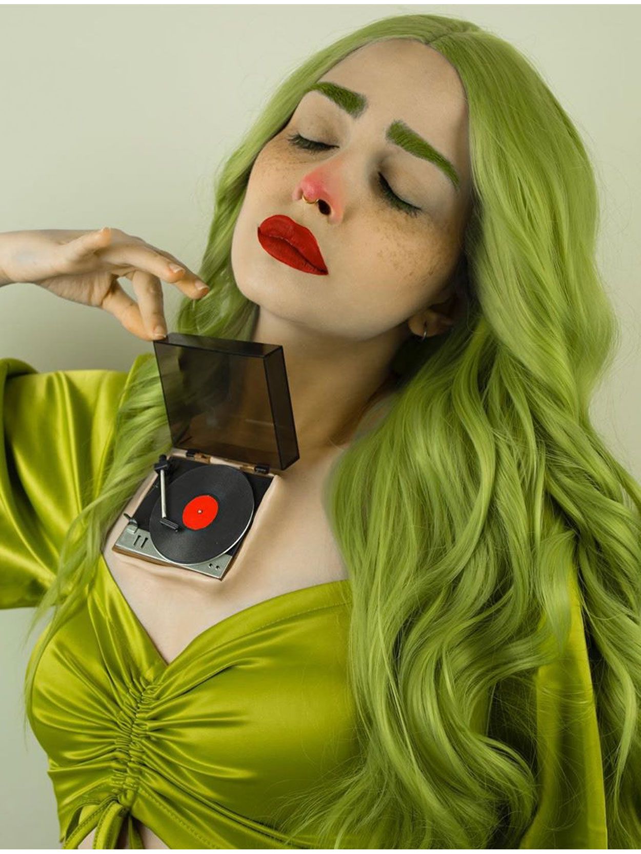Sci-Fi inspired glorious green lace front wig.