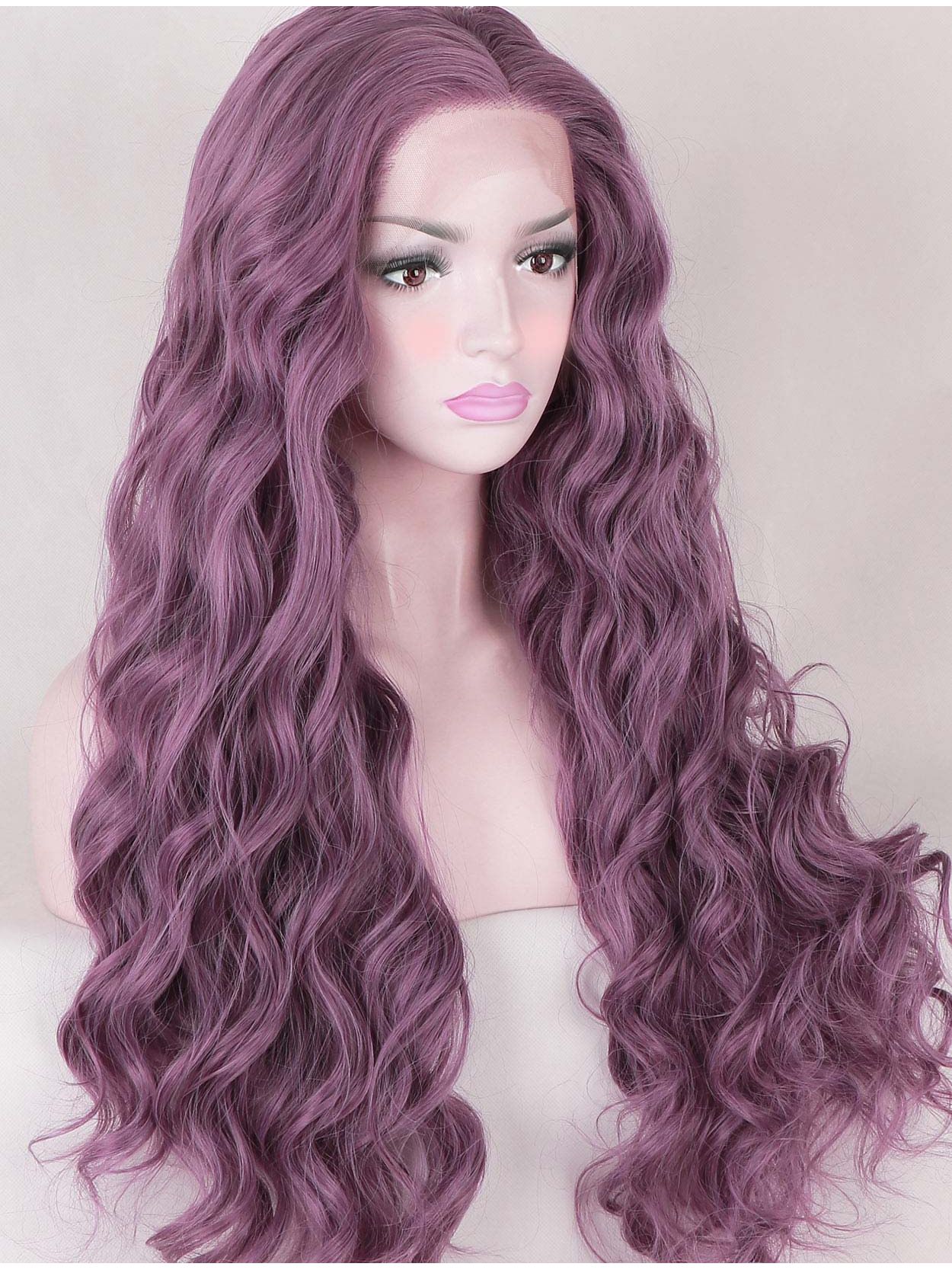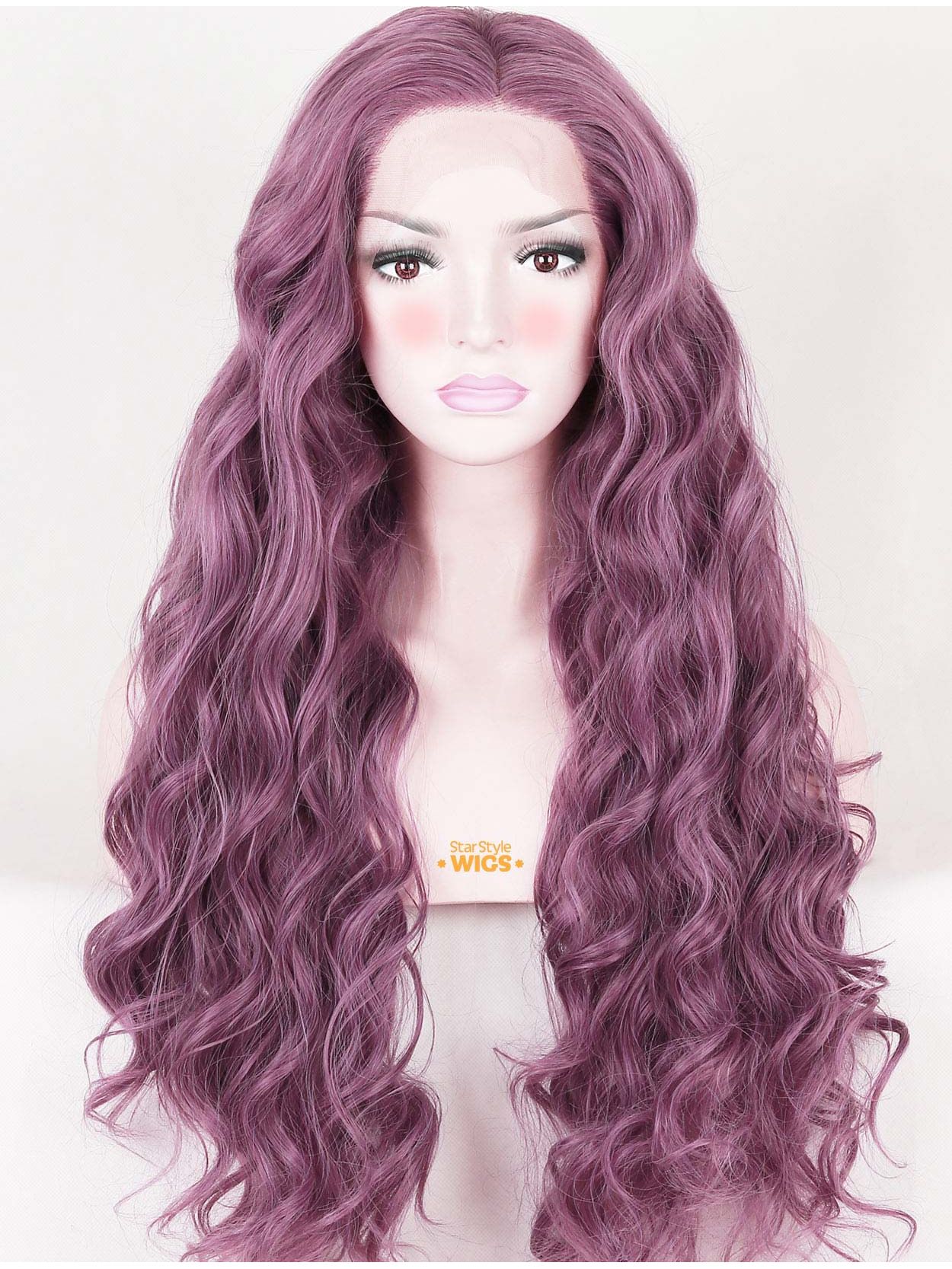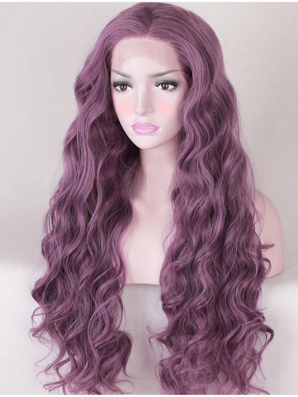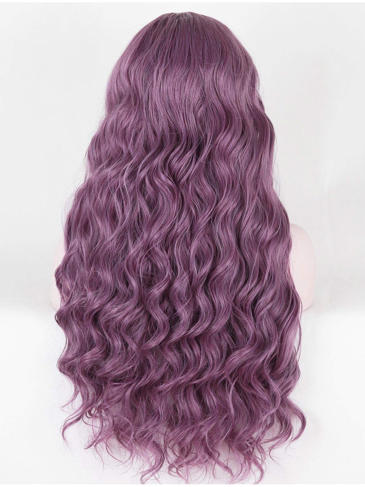 A mix of plum and dusky purple shades run through long, loose beach waves evoking a laid-back cool effect.
