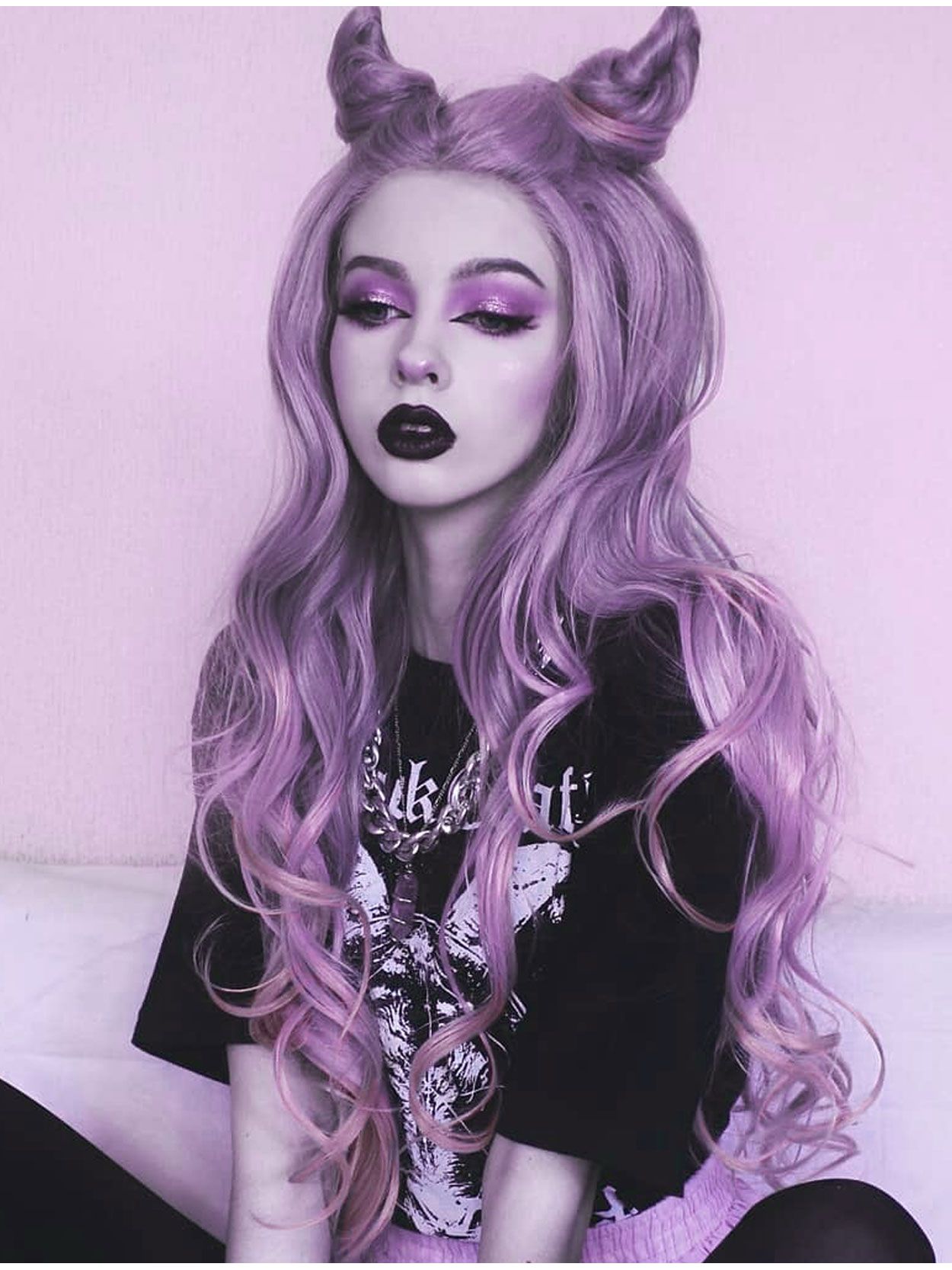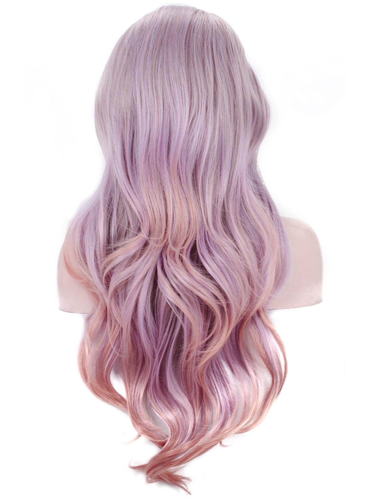 The dusty lavender hair lengths fall into natural, loose wavy layers that can be styled with ease as pictured.